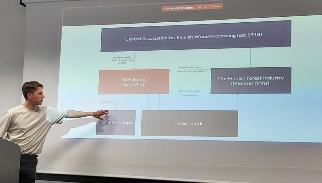 Eetu Poso presented his paper ”Creating organizational continuity by engaging in the paradox: a historical study of coopetition in joint R&D research organization” at sub-theme 39: Expanding Paradox Research across Time, Place, and Bodies.